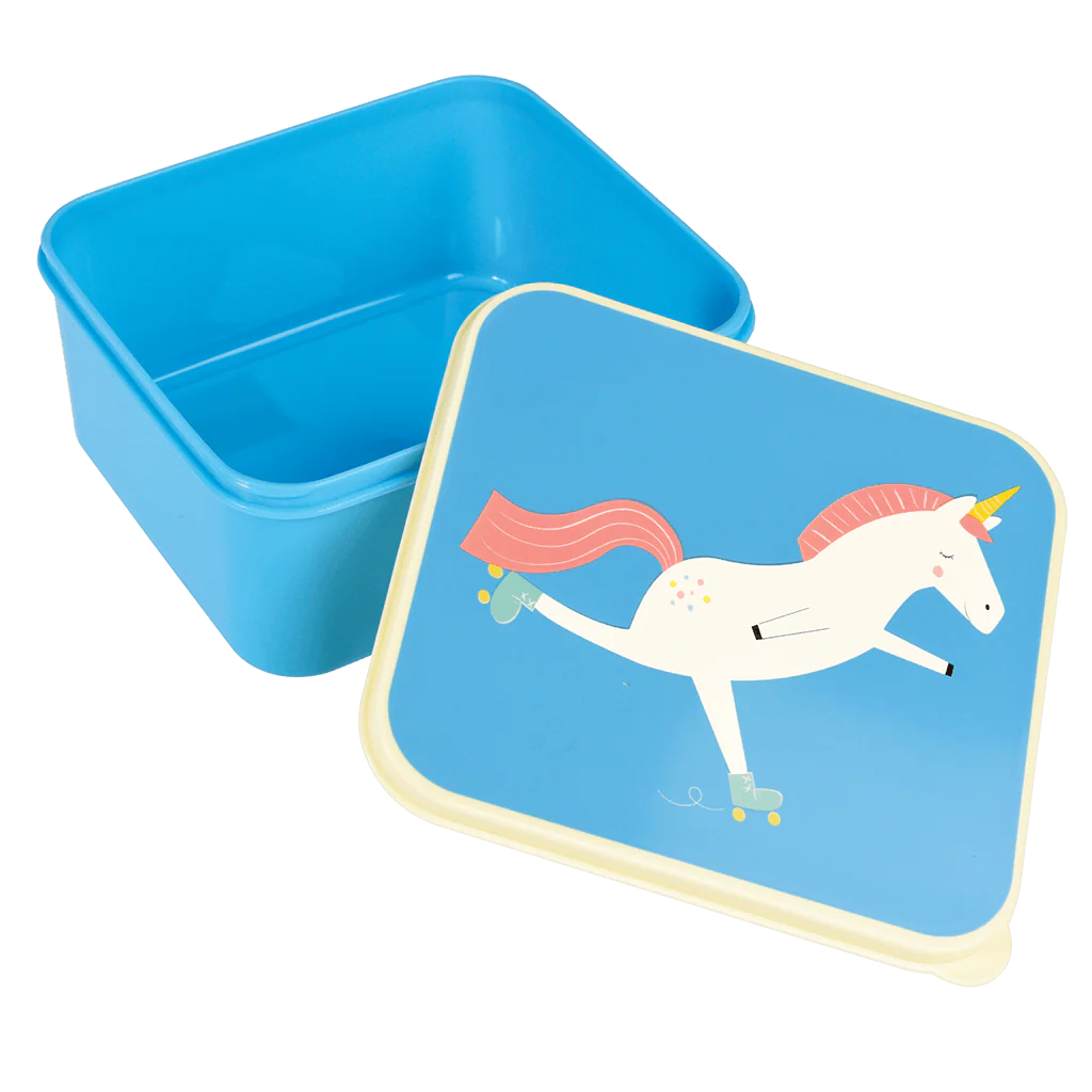 The classic BPA free plastic lunch box now comes with our fun Magical Unicorn print. A perfect fit for a sandwich and snack, they're perfect for picnics and school lunches.